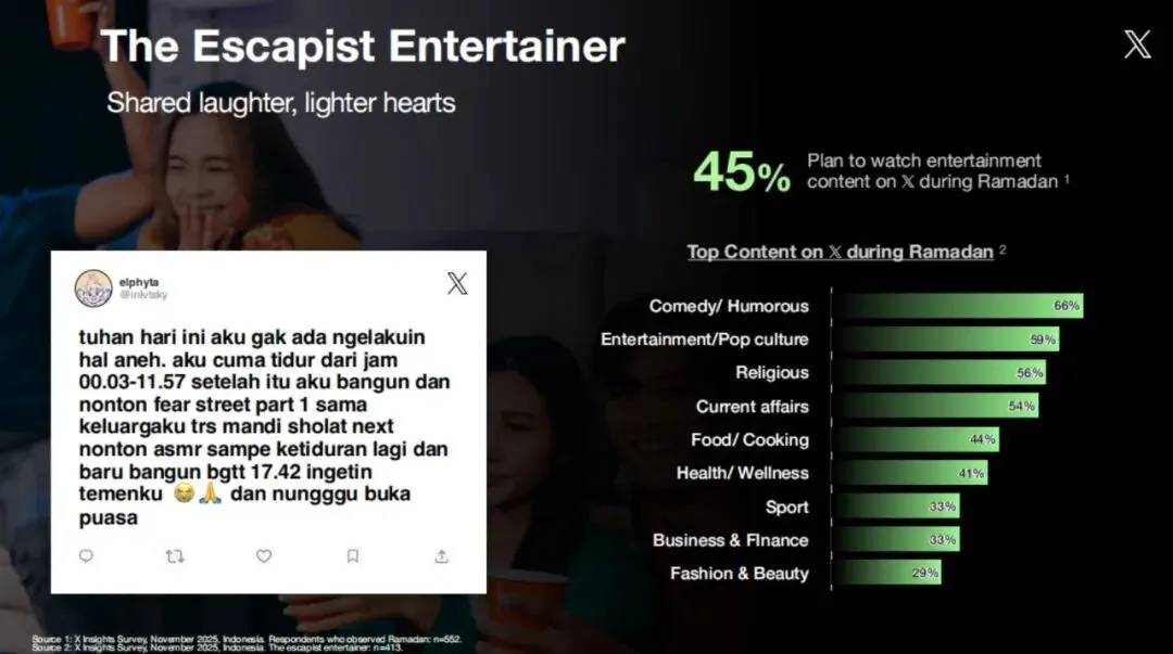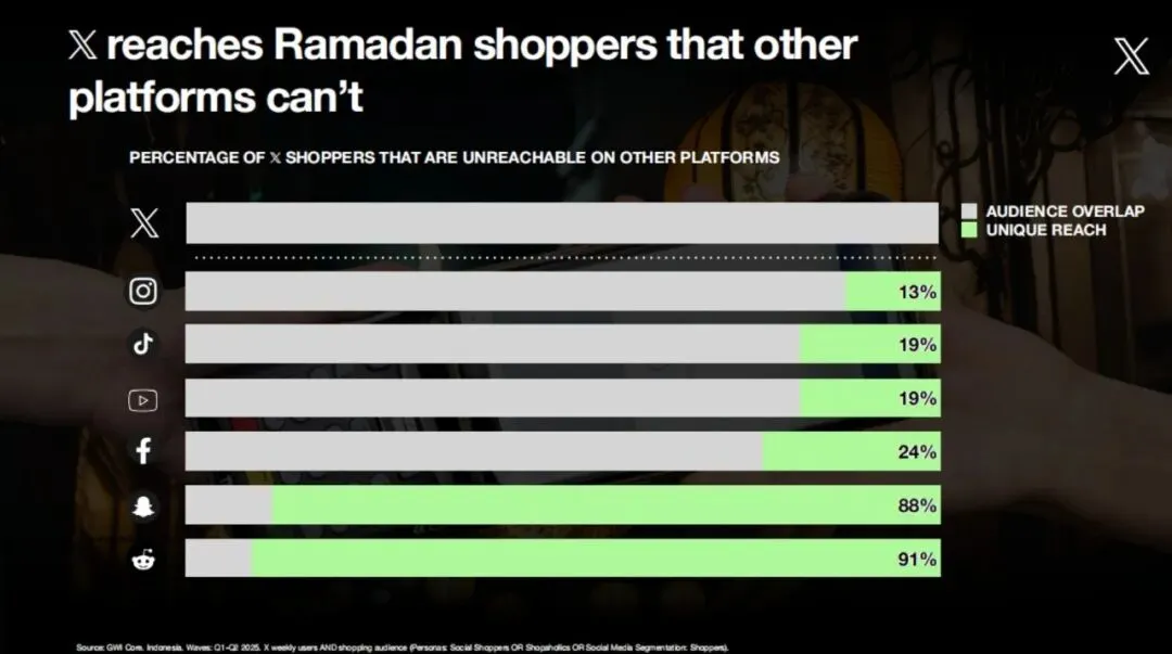 增量触达:X 能触达其他平台无法覆盖的斋月购物者;