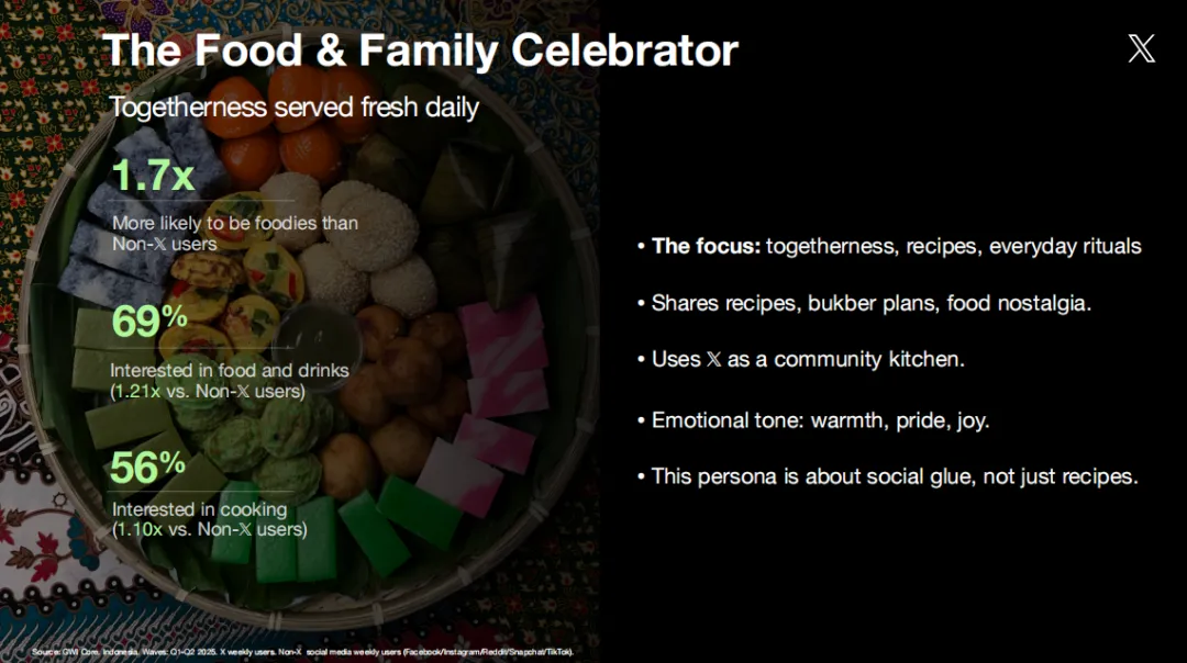 没有一种内容能通吃所有人群。精准画像 + 分众沟通,才是斋月营销的破局关键。斋月期间的印尼 X 用户,清晰划分为五类典型角色,每一类都有鲜明的行为特征与内容偏好: