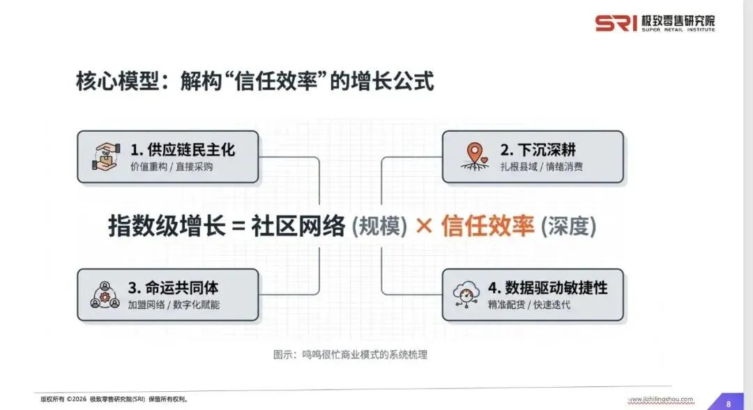 鸣鸣很忙的成功可以归结为两个核心引擎的协同作用,这两个引擎分别对应零售的前端和后端: