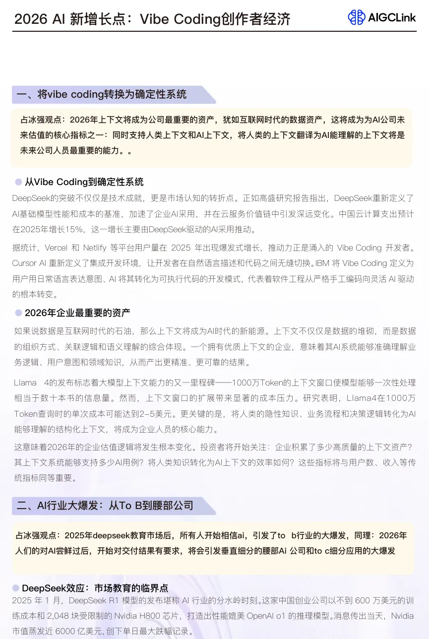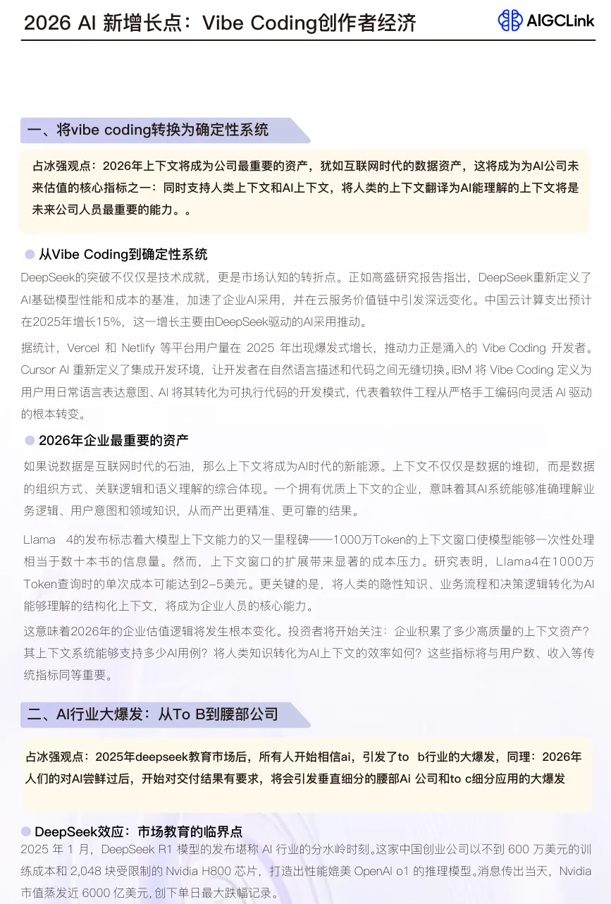 2026 年 AIGC 已进入“价值兑现期”!万亿规模的 Vibe Coding 创作者经济来临,上下文成为企业核心资产,AI 从工具升级为生产力基础设施,职业形态与产业格局迎来全方位重构。