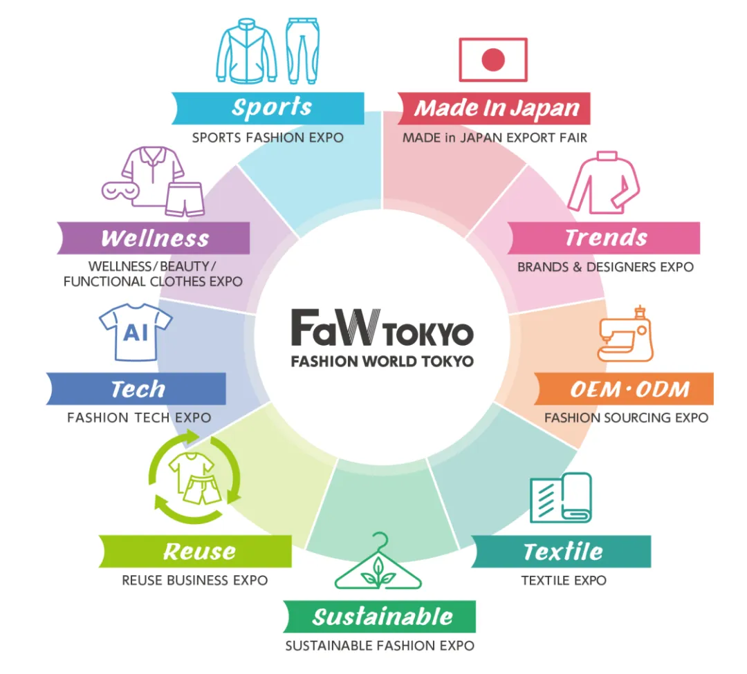 FaW TOKYO春季展由9大专业展会组成,涵盖时尚全领域,从品牌和设计师到纺织、包袋、鞋类、配饰、OEM/ODM工厂及时尚科技等核心领域资源,是全球采购商、进口商、经销商、零售商、制造商及业界精英探索时尚现状、洞察未来趋势、促成商贸合作的核心平台。