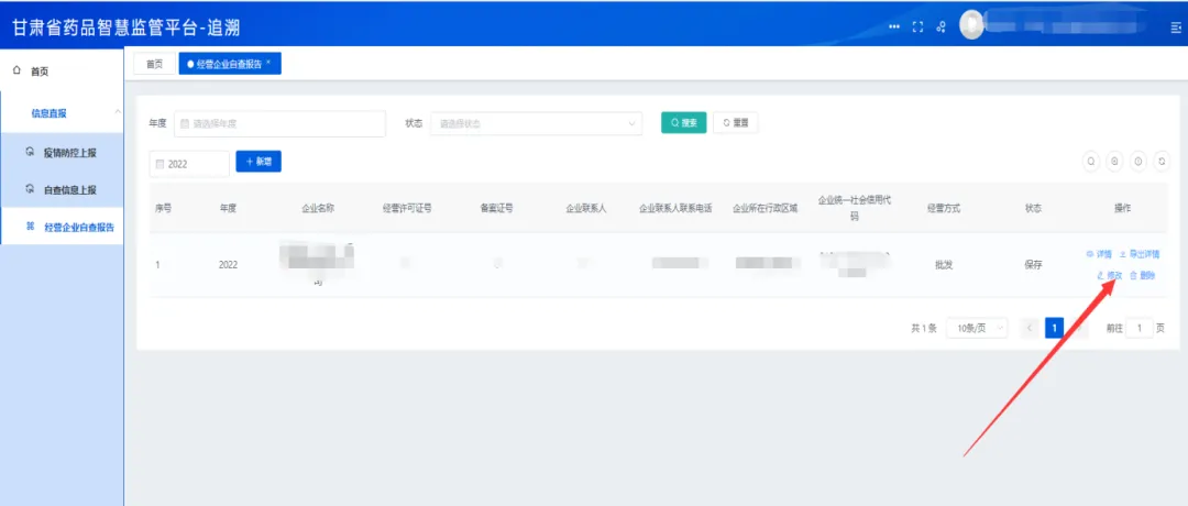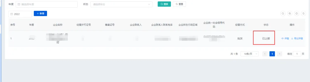 点击“提交”按钮,所填报年报表将正式上报提交至智慧监管平台,年报表内容将不可修改或删除
