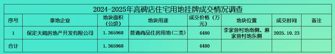 (高碑店市2024-2025住宅用地成交情况调查)