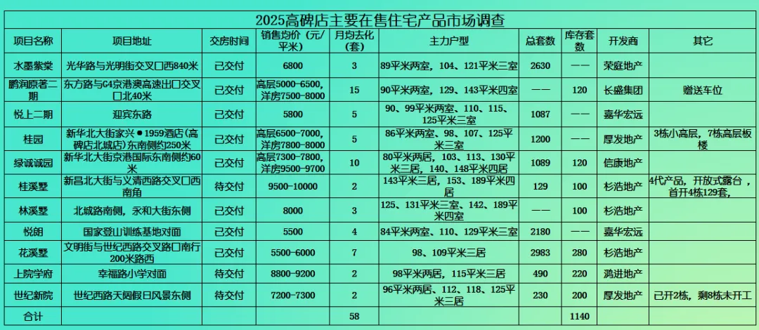 (高碑店市主要在售项目成交情况调查)