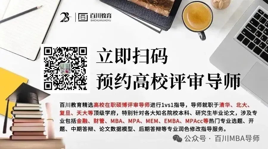 百川教育精选高校在职硕博评审导师进行1vs1指导,导师就职于清华、北大、复旦、天大等顶级学府,特别针对各大知名院校本科、研究生毕业论文,涉及专业包括金融、财管、MBA、MPA、MEM、EMBA、MPAcc等热门专业选题、开题、中期答辩、论文数据模型、后期答辩等专业润色修改指导服务。如果你有论文难题,添加下方百川老师微信预约导师1vs1服务。