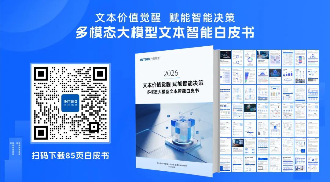 合合信息重磅发布《文本价值觉醒,赋能智能决策——多模态大模型文本智能白皮书(2026)》。这份白皮书不仅提出了一套完整的复杂文本智能五大核心能力标准,更通过11个真实行业标杆案例,全景展示多模态文本智能技术如何深入业务场景,将文档转化为决策力。