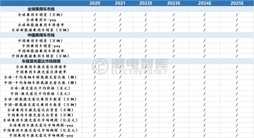 1、全球乘用车/激光雷达市场总规模及增速
