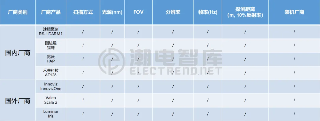 2、全球激光雷达厂商产品对比