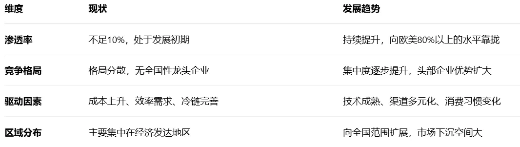 中国烘焙行业市场规模庞大,但与发展成熟的市场相比,仍存在巨大的增长空间。根据行业数据,目前中国冷冻烘焙技术的渗透率不足10%,远低于欧美国家80%以上的水平。这种差距主要源于中国冷冻烘焙技术起步较晚(1990年代才开始应用),以及消费习惯的差异。然而,随着经济发展和生活节奏加快、人力成本上升、对产品品质一致性要求提高等因素的驱动,烘焙食品的工业化生产已成为不可逆转的趋势。
