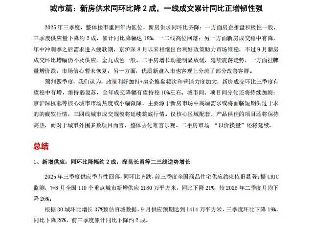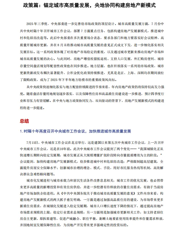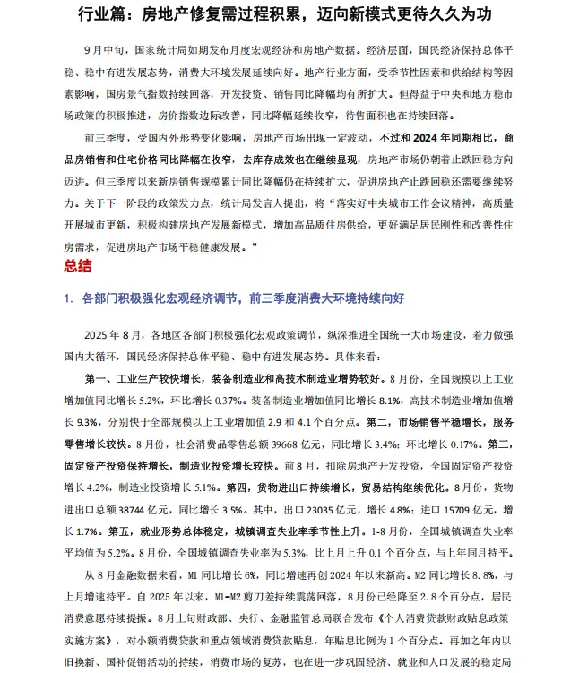 免费资料:2025年三季度丨中国房地产行业总结与展望报告
