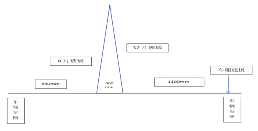 图4.1 卸下A型架右边19块玻璃后装车情况及示意图