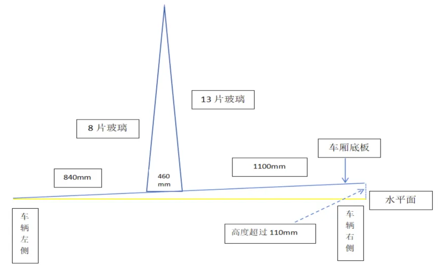 图5.货车上A型架左边的7块玻璃同时倒向第一块玻璃