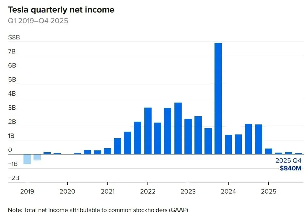 特斯拉去年净利润明显低迷