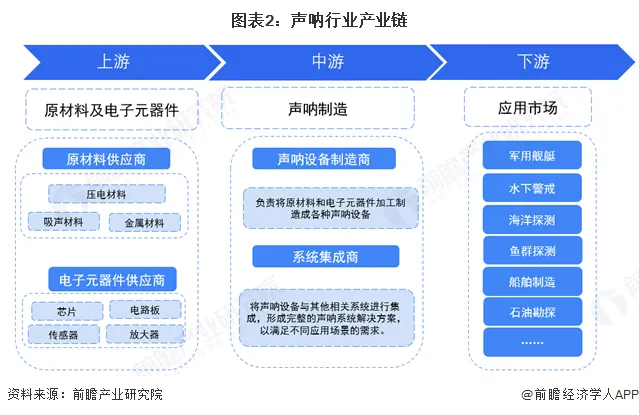 声呐行业产业链涵盖了从上游原材料供应、制造,到中游声呐系统研发、生产与集成等制造环节,再到下游应用的完整环节。上游主要包括电子元件、传感器、特种材料等供应商,这些原材料和零部件的质量直接影响声呐系统的性能。中游企业负责声呐系统的设计、研发与生产,涉及复杂的信号处理、声学设计和系统集成技术,即声呐制造。下游应用广泛,涵盖军事领域的反潜、水雷战,以及民用的海洋资源勘探、渔业捕捞、水下工程检测等。随着海洋经济的发展和军事需求的增加,声呐行业产业链不断延伸和深化,技术创新和市场需求推动了产业链各环节的协同发展,形成了从基础材料到高端应用的完整产业生态。