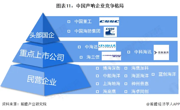 声呐行业企业中以国有企业为领头羊,其中中国重工是大型国有重工企业,在船舶制造及海洋工程领域实力雄厚,在声呐相关技术研发和应用方面有强大的资源和技术储备,主导研发 “潜龙” 系列 AUV,搭载 SLAM 技术用于深海科考。中国海防是水下信息化的龙头企业,通过资产重组实现了对水下探测、通信、对抗、导航的全产业链覆盖,是国内唯一涵盖水声电子全体系科研生产能力的企业,在军工领域具有不可替代性,其拖曳声呐、水下信息系统总体等产品市占率高。此外,中海达、中科海讯和海蓝达等上市公司也是声呐行业中的重点企业。博海深衡等民营企业在声呐行业中也各自凭借一定的技术、产品或市场渠道,在特定细分领域或区域市场占据一席之地。