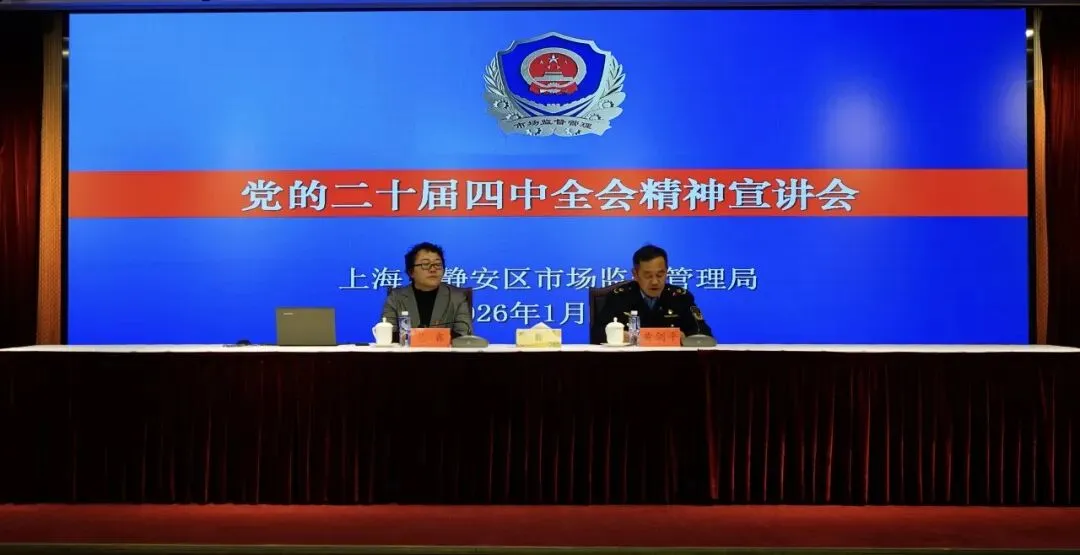 为推动党的二十届四中全会精神在市场监管领域落地生根,切实把理论学习成效转化为履职尽责的强大动力,近日,静安区市场监管局开展专题宣讲会,邀请区委党校副教授、区五星讲师团成员尤鑫老师授课。局党组副书记黄剑平主持会议,局党组成员、区管干部、各支部书记、机关党员在六楼会议室现场聆听,各所队通过视频直播同步收看,实现区局近300名党员干部同频共振、共学共进,凝聚起奋进新征程、建功新时代的磅礴力量。