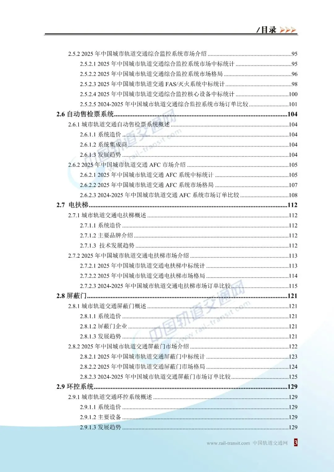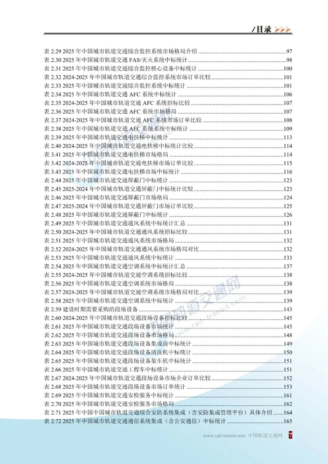 《2025城轨机电报告》将参考和使用 2023-2025 年《中国城市轨道交通建设市场发展报告》的大量数据,对车辆、供电、通信系统、信号系统、综合监控系统、自动售检票系统、环控系统(通风系统+空调系统)、段场设备、综合安防系统等各机电设备系统的全面梳理,包括各系统的系统造价、前景趋势、2023-2025中标统计。