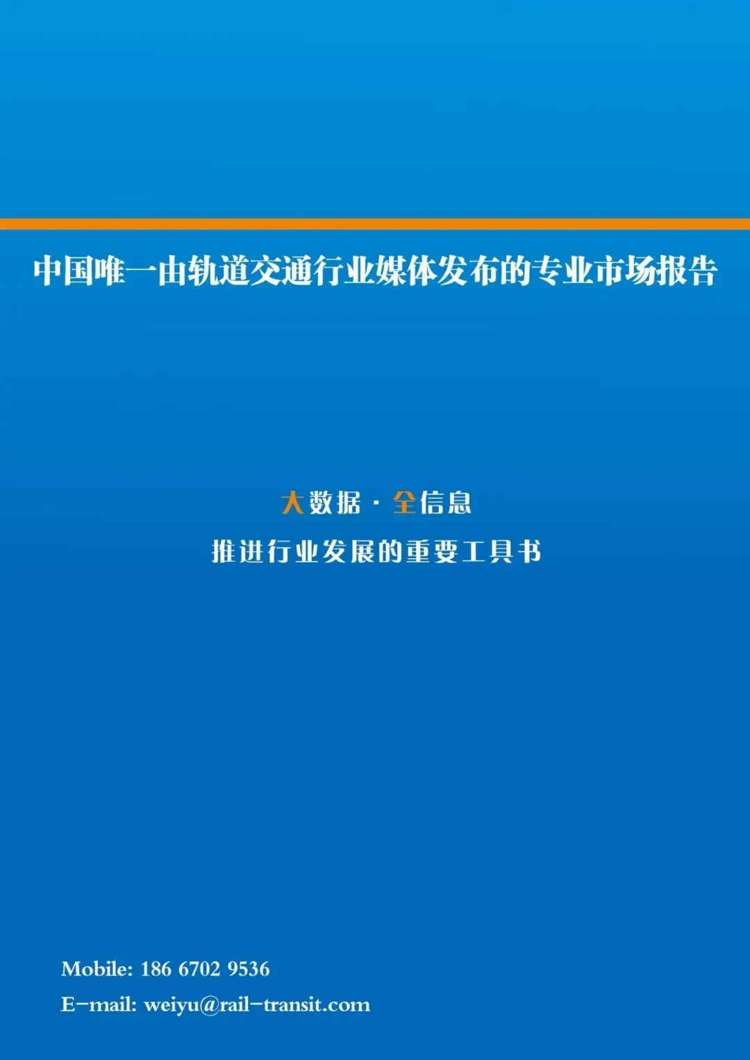 作为中国轨道交通领域的独立市场分析者和行业信息传递者,中国轨道交通网 (www.rail-transit.com ) 自2010年开始打造《中国轨道交通蓝皮书》系列报告。多年的数据积累和渠道拓展,使得《中国轨道交通蓝皮书》成为企业了解和开拓市场,制定战略方向得力的参考资料。