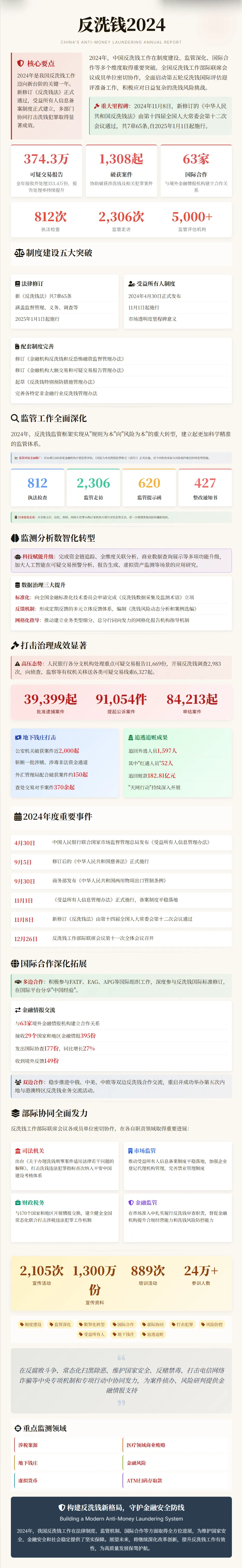 中国人民银行今日发布《2024中国反洗钱报告》,主要内容包括:
