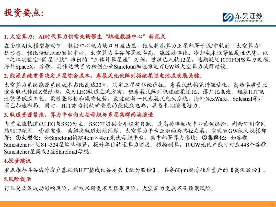 文章篇幅有限,如需获取《太空算力中心具备颠覆性优势,HJT或为能源系统最优解》报告电子版,请在【光伏行研】微信公众号后台回复:报告。