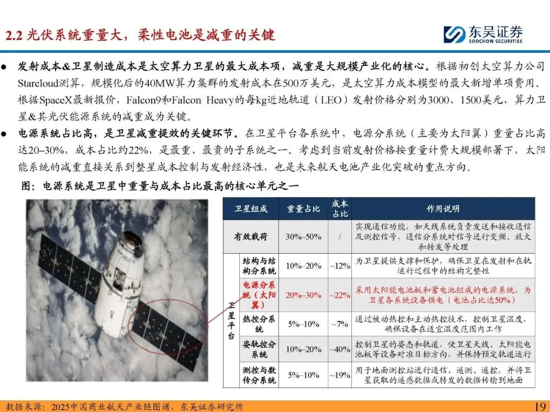 2. 能源系统重量决定卫星综合成本,卷展式光伏阵列搭配柔性电池成发展关键