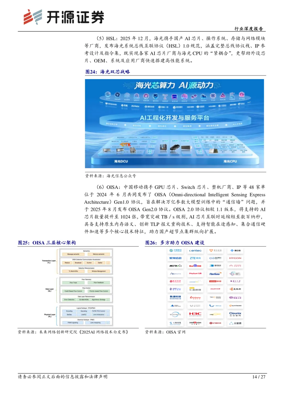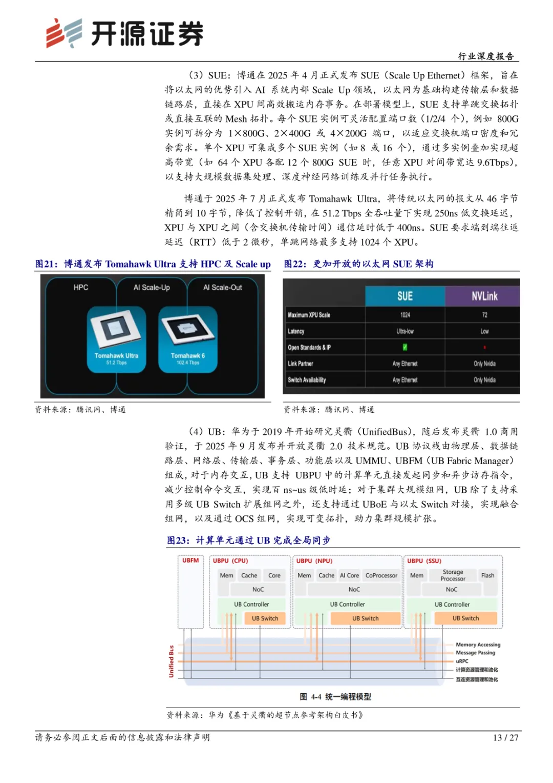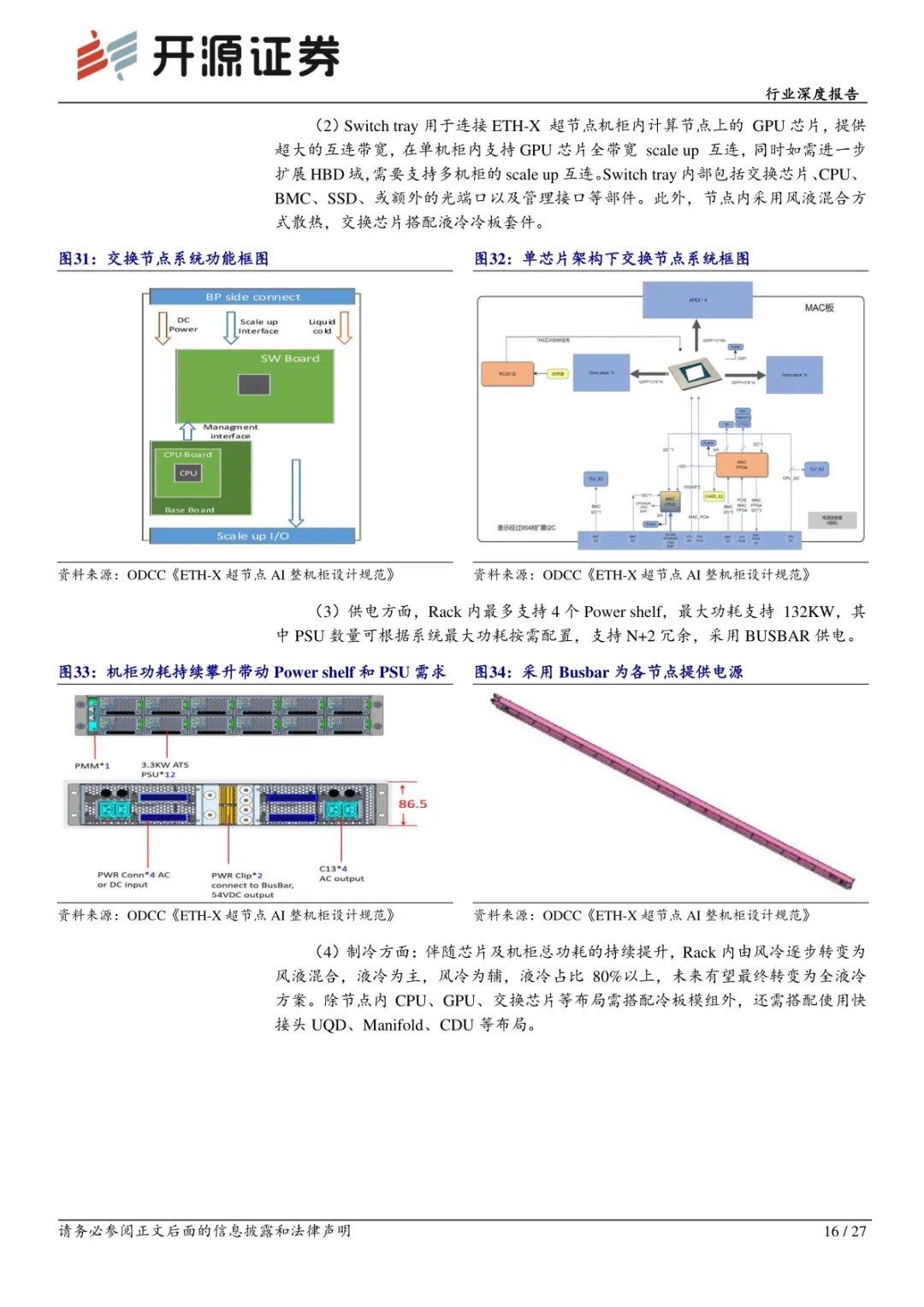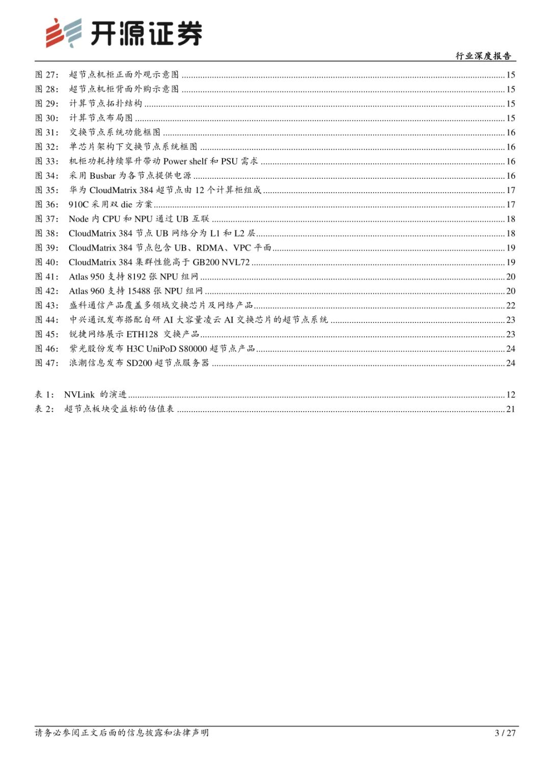随着 AI 模型向万亿参数迭代,训练与推理对算力的需求呈爆发式增长,算力基础设施迈入超节点时代。超节点由英伟达率先提出,通过 Scale Up 和 Scale Out 双维度扩展,将多个算力芯片整合为逻辑上的 “大型 GPU/ASIC”,突破传统服务器效率与可靠性瓶颈。其架构涵盖计算节点、交换节点等核心单元,带动光通信、液冷、供电、芯片等环节全面升级。国产超节点发展迅猛,华为 Atlas 系列集群通过创新互联技术,有效弥补单卡算力差距,已实现规模部署。超节点产业链长期受益于 AI 算力需求增长,核心投资方向集中在网络端、AIDC、计算端三大主线,光模块、液冷、服务器电源、交换芯片等赛道潜力突出。相关企业凭借技术创新与产品适配,在国产替代与规模扩张中占据优势,推动行业持续升级。