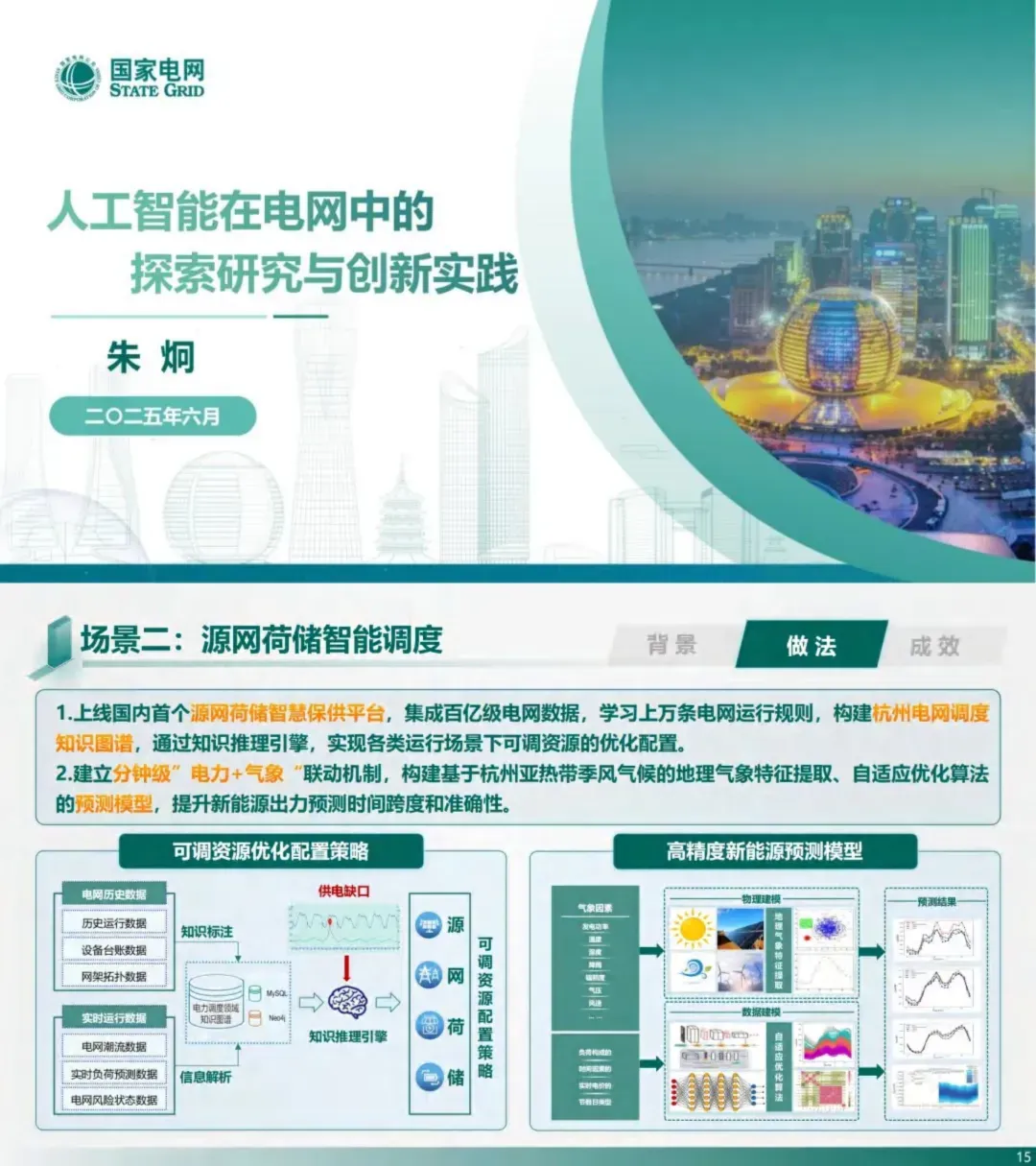 (1)杭州上线国内首个源网荷储智慧保供平台,集成百亿级电网数据,学习上万条电网运行规则,构建杭州电网调度知识图谱,通过知识推理引擎,实现各类运行场景下可调资源的优化配置。