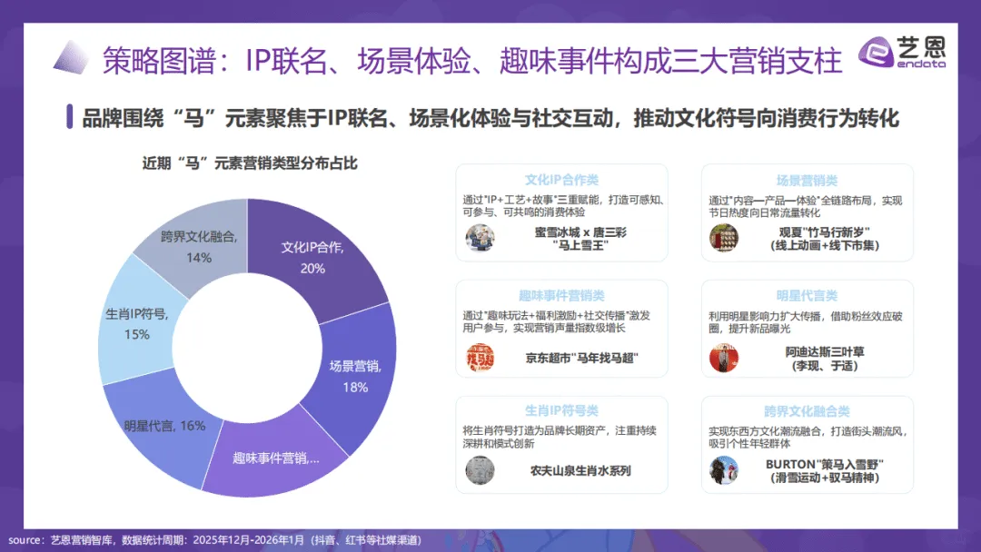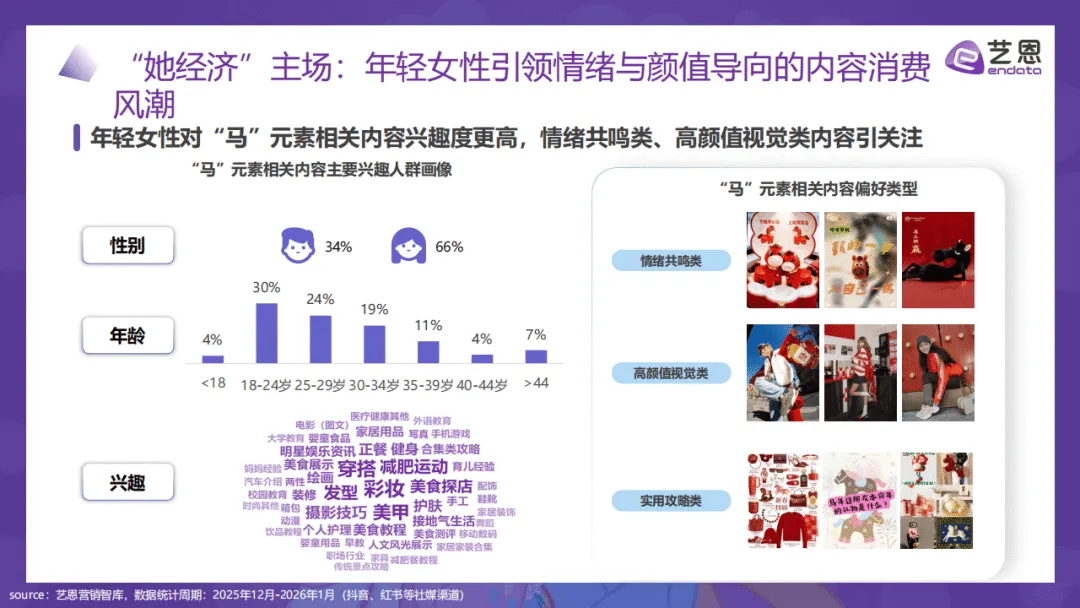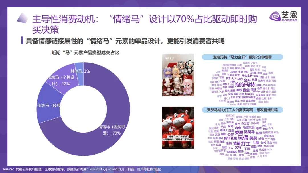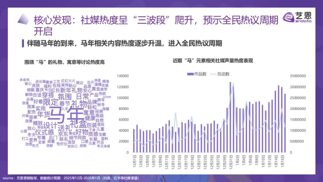 2026马年营销热潮已然开启,“马”元素在社媒平台呈现三波段热度爬升态势,相关搜索量与销售额同步显著增长,成为新年营销的核心符号。这一文化符号的价值已实现从传统吉祥寓意到“情绪马”的跃迁,推动品牌营销向多元化方向发展。
