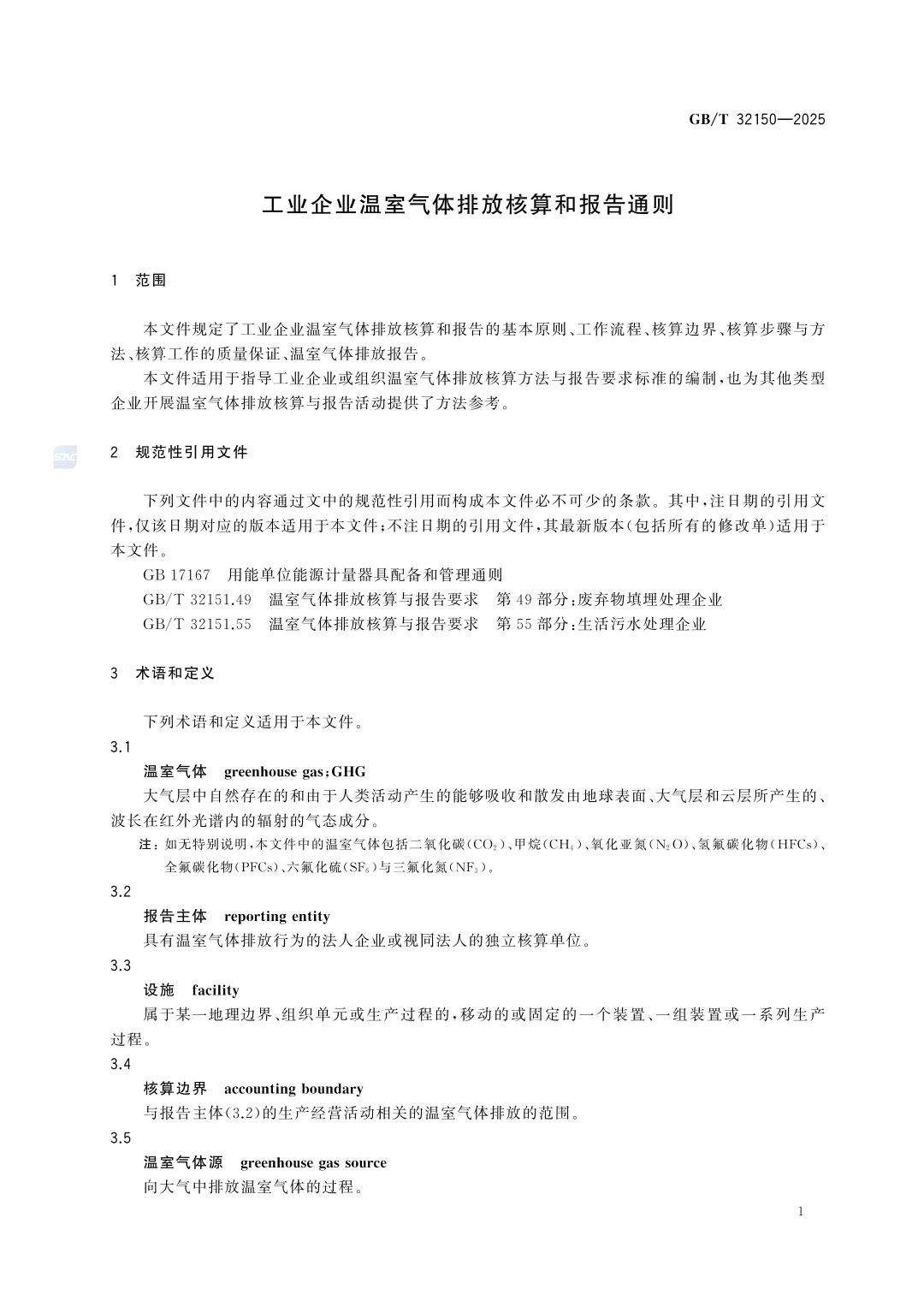 ★GB/T32150-2025《工业企业温室气体排放核算和报告通则》★