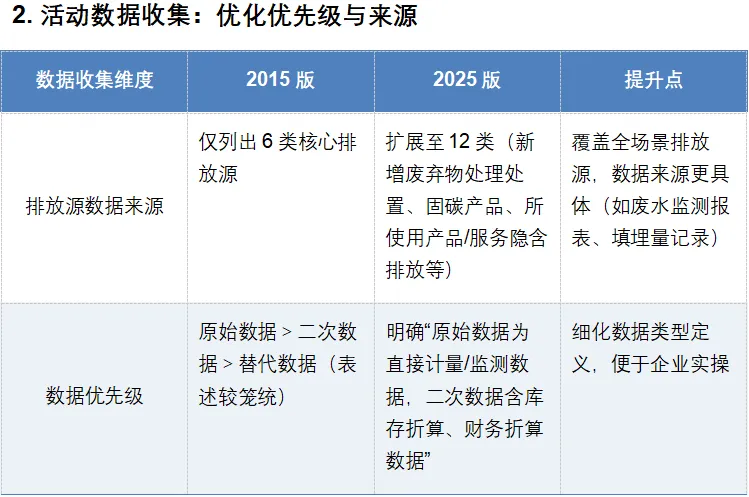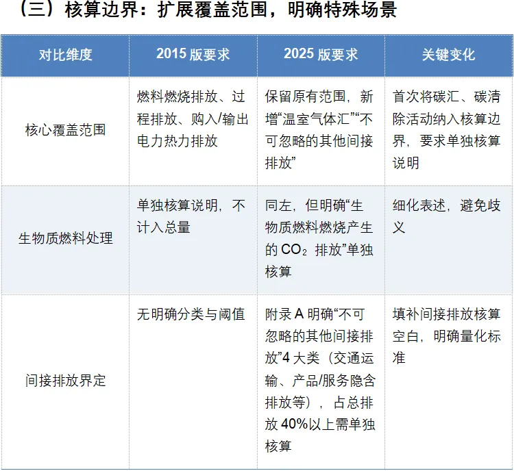 ● 2025版新增“核算方法变化需说明原因”的要求,提升数据追溯性。