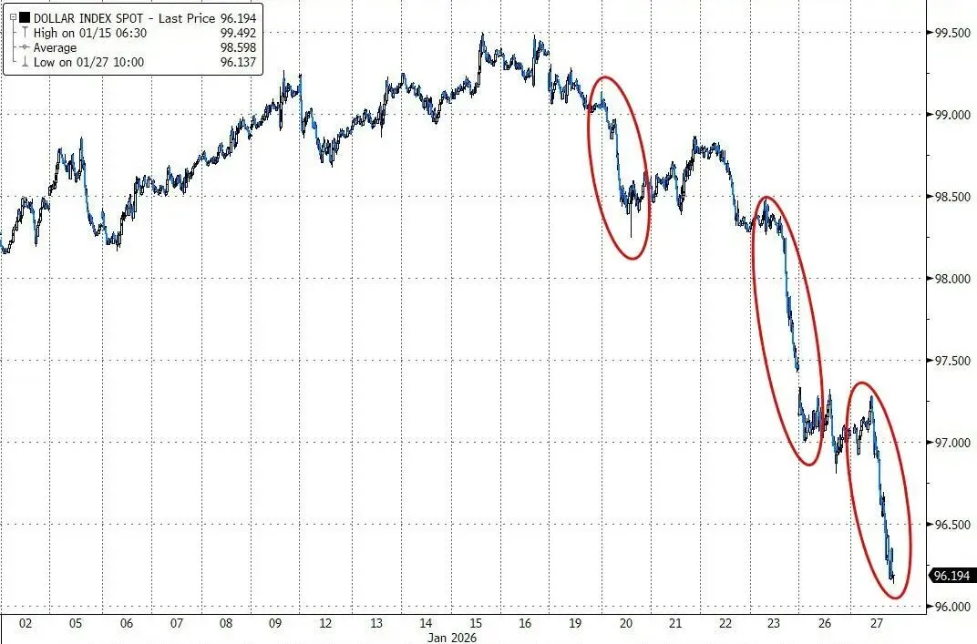 美元指数跌超1%,创去年4月特朗普宣布关税以来最大四日跌幅;日元三日累涨4%,欧元和英镑创2021年来新高,离岸人民币近三年来首次盘中涨破6.94;比特币盘中涨超2%重上8.9万美元。