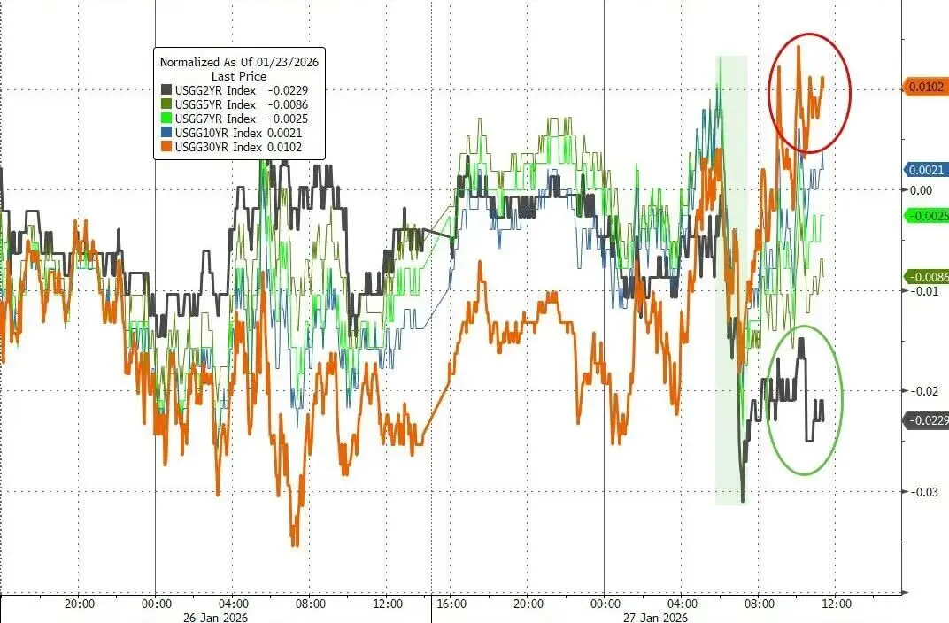 长短期美债收益率表现不一,短债收益率下行,长债收益率反弹