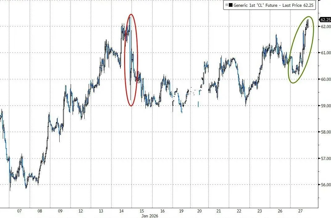 美国WTI原油自1月中以来首次重上62美元