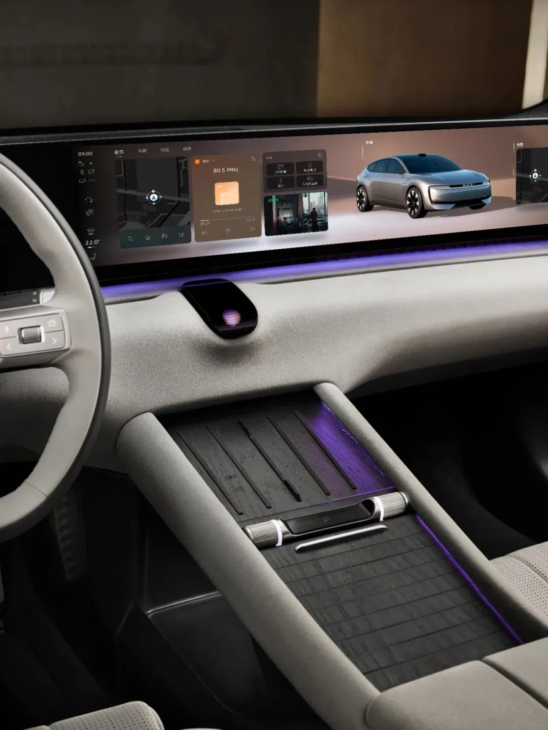 从解锁时如星光铺陈的迎宾光毯与安静顺滑的无框电吸门,到由Bose音响、观夏定制香氛、天然实木饰板与可自由调光的智能光幕共同营造的感官体验,奥迪E5 Sportback座舱的每一处细节处理,都在进行巧妙的“氛围管理”。