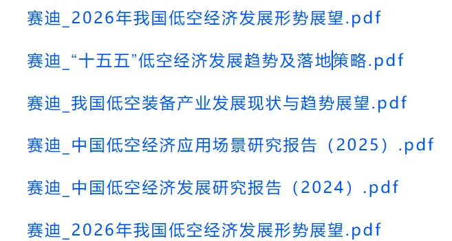 如果小编没记错的话,这应该是赛迪近两年在低空领域的第五篇研究报告,之前的四篇在业内均被广泛传播研习。这四篇研究报告分别是《“十五五” 低空经济发展趋势及落地策略》、《我国低空装备产业发展现状与趋势展望》、《中国低空经济发展研究报告(2024)》以及《中国低空经济应用场景研究报告(2025)》。