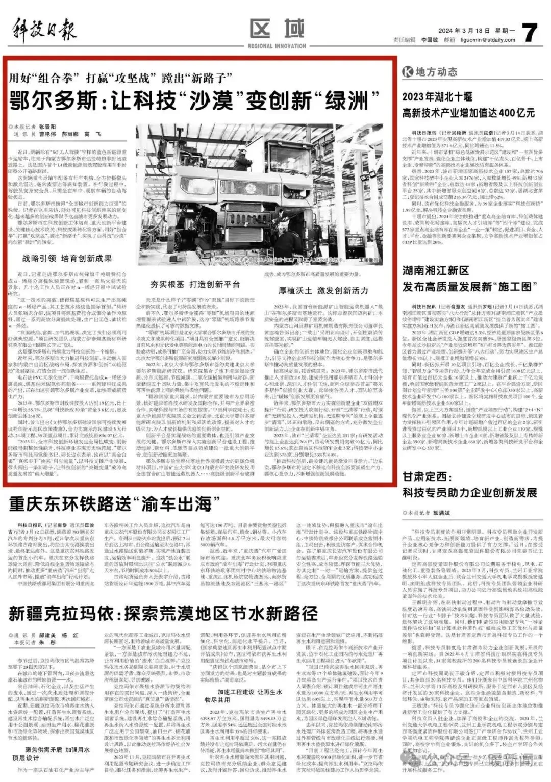 ▲《科技日报》3月18日7版