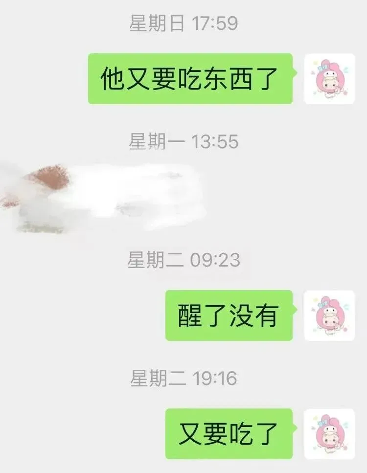 现在他会时不时打嗝,有时候打嗝打不停了。