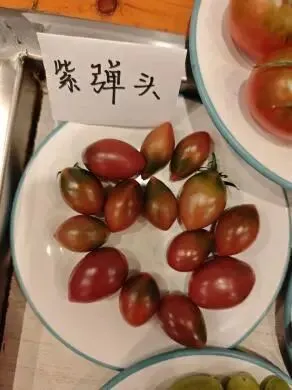 紫弹头番茄:外观小巧似弹头,颜色红紫相间有光泽;口感酸甜多汁,果肉细腻,甜度高且风味浓;可溶性糖含量为6.7%;价格为9.99 元/斤。