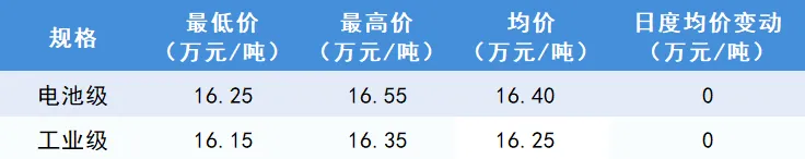 今日碳酸锂期现市场价格暂稳,当前市场暂无利空信息,市场散单出货意愿偏弱,下游多以按需采购进行,预计短期内碳酸锂现货市场价格会在16万元/吨-17万元/吨之间宽幅震荡进行。