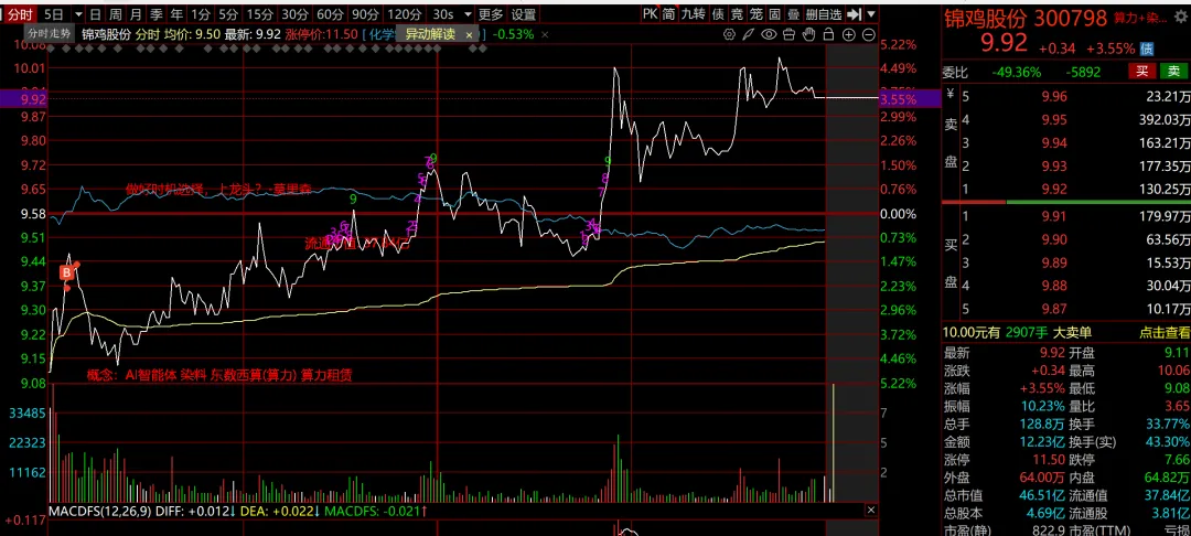 吸了一波锦鸡股份,这个昨天化工染料的强势标的,
