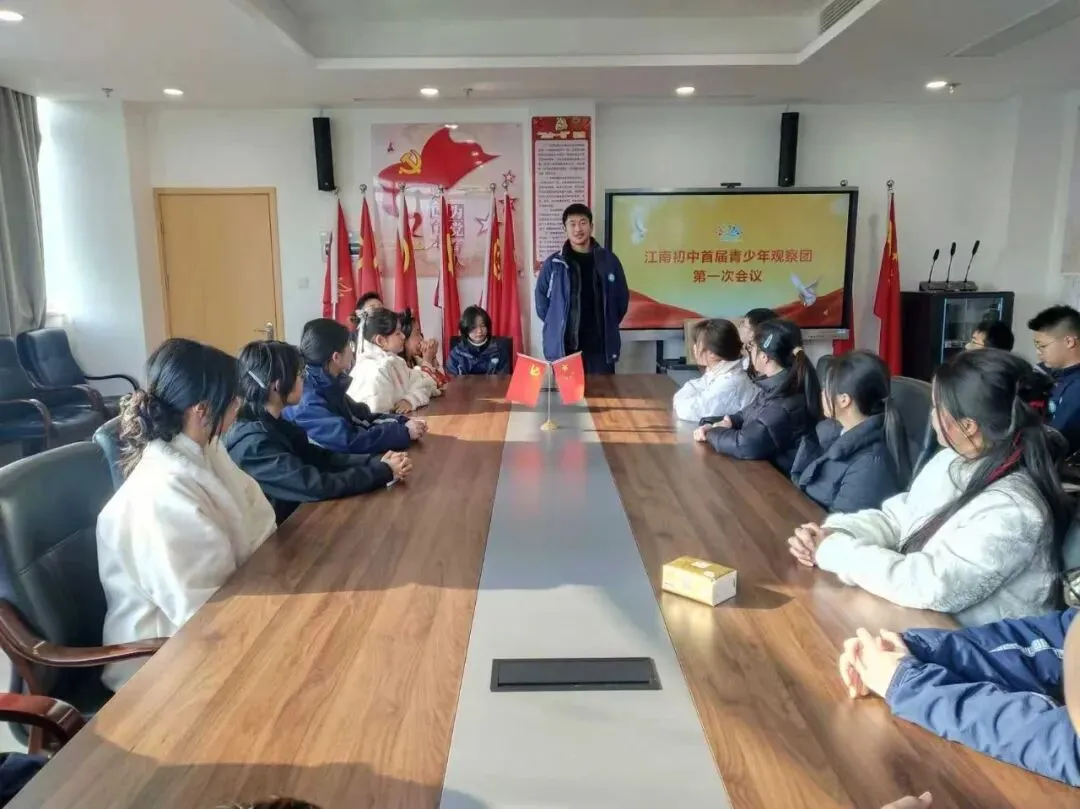 2025年2月13日,江南初中首届青少年观察团第一次会议在行政楼四楼党员活动室隆重召开