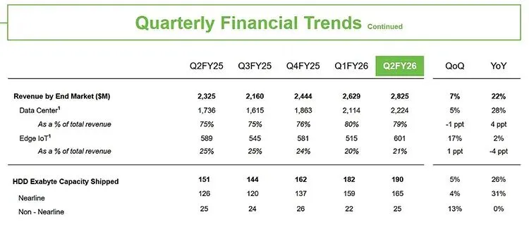 注:希捷2026财年是从2025年7月1日开始的,所以这里的2026年第二财季指的是2025年10月1日到12月31日。