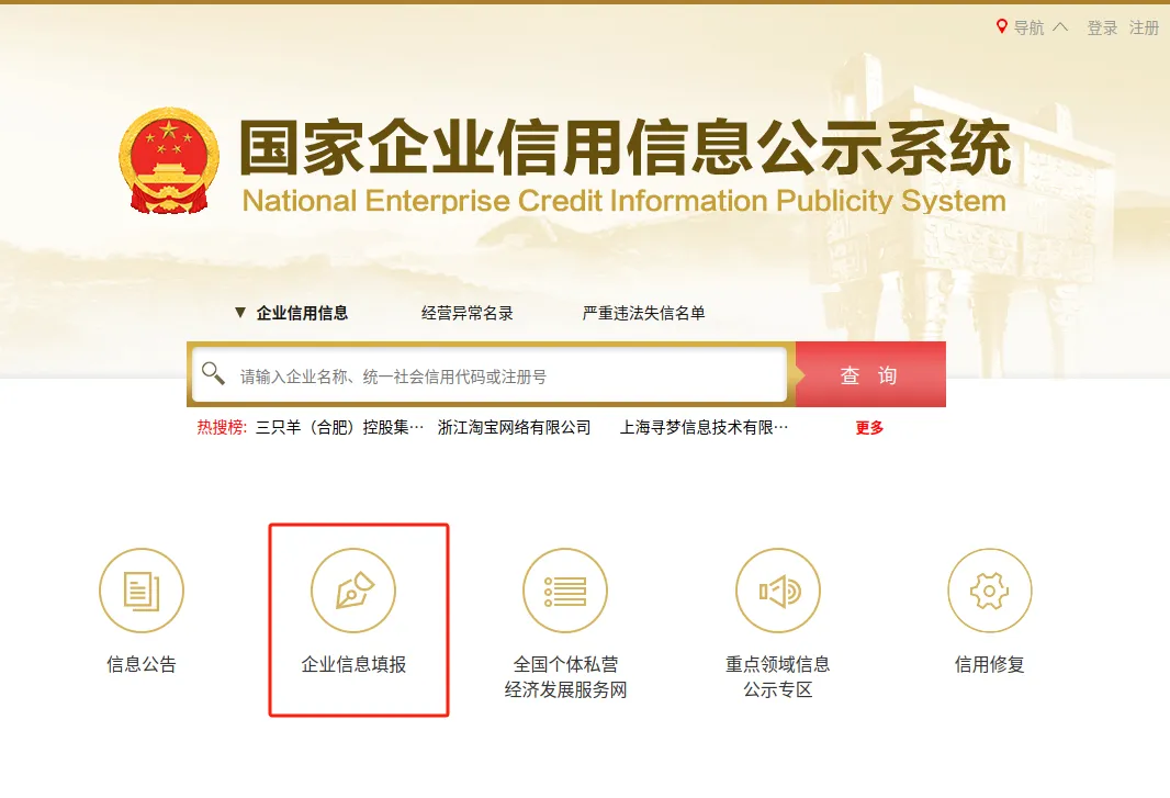 1、登录国家企业信用信息公示系统(网址:https://www.gsxt.gov.cn)选择“企业信息填报”栏目。