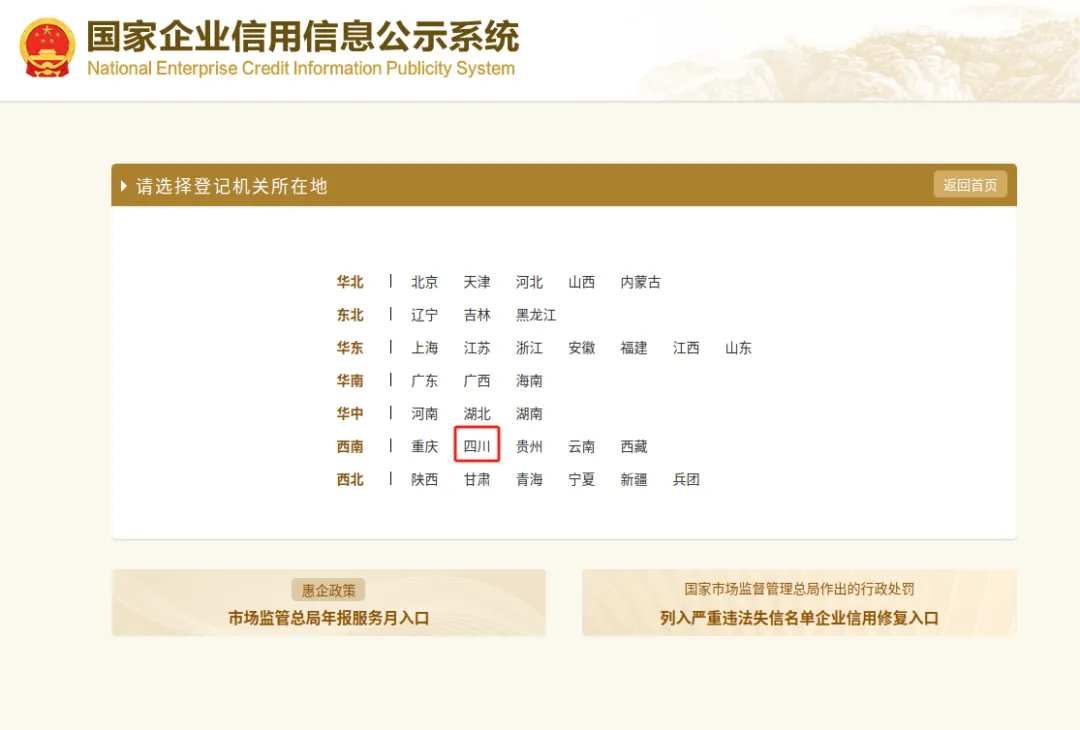 2、根据经营主体登记机关所在地选择相应的省(市),进入登录页面。