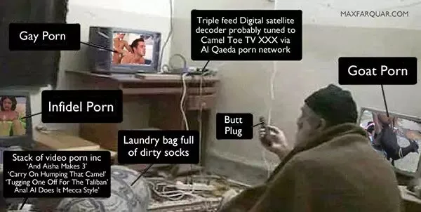 据说海豹突击队破门而入时,拉登在看这个……(网友恶搞图)