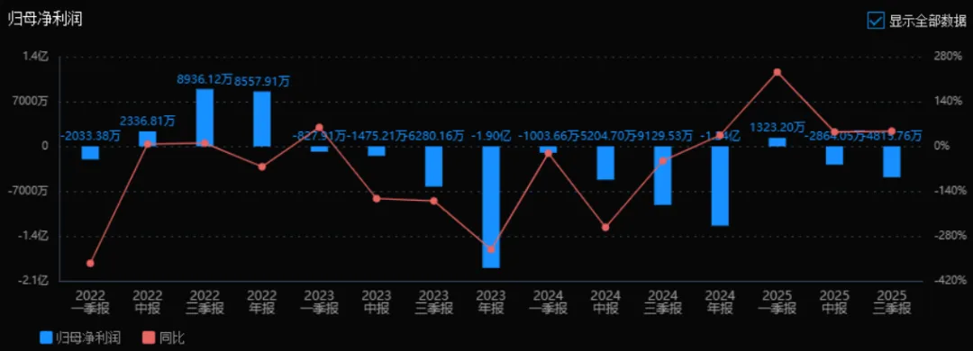 归母净利润:2025年三季度的归母净利润为-4815.76万元,相较于2024年三季度的-9129.53万元,亏损收窄了47.25%。评价:虽然仍处于亏损状态,但亏损幅度明显减小,盈利能力有所改善。
