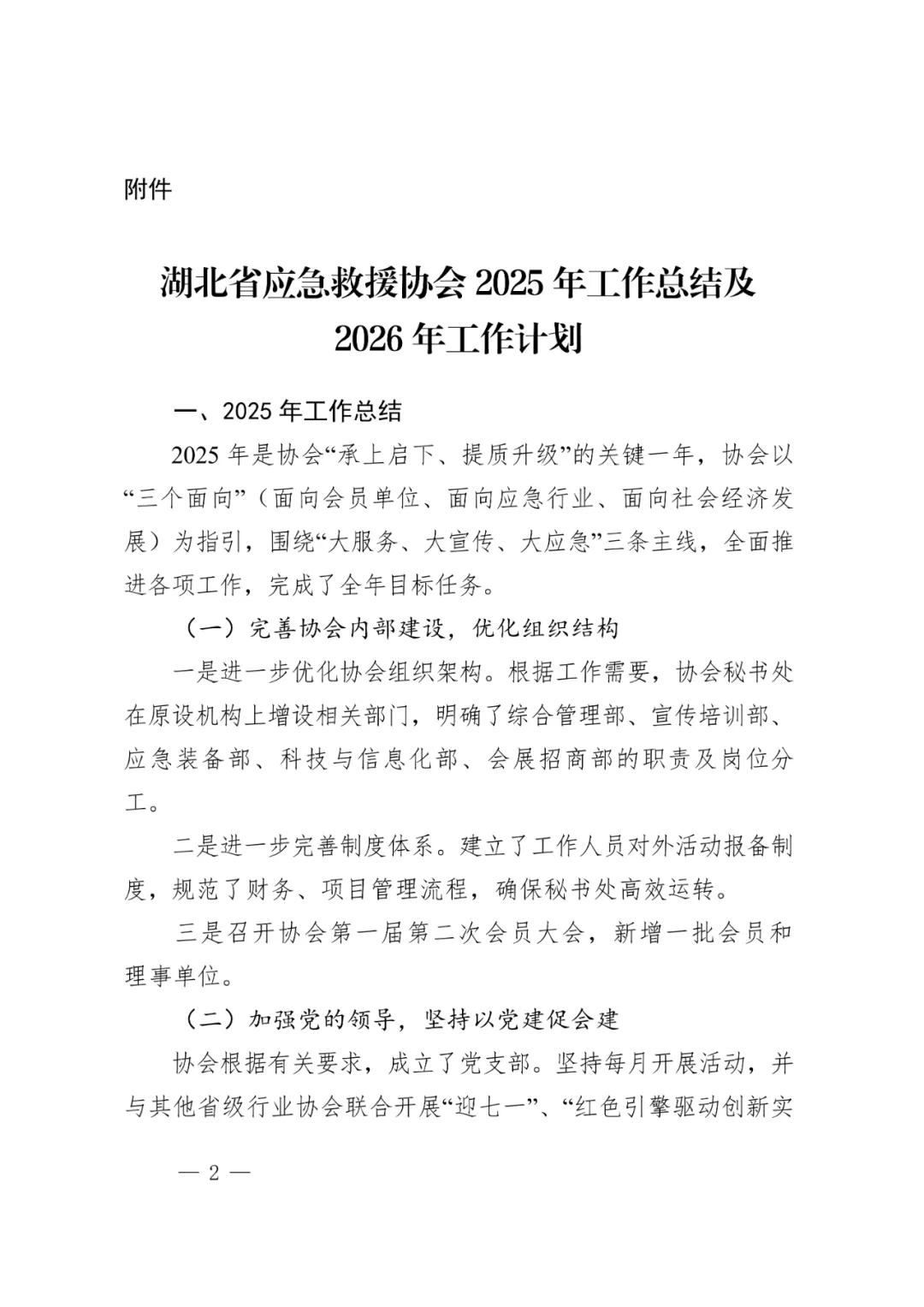 附件:湖北省应急救援协会2025年工作总结及2026年工作计划