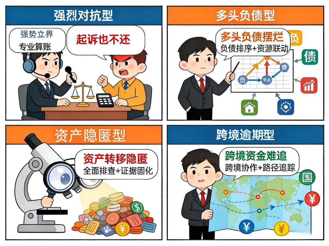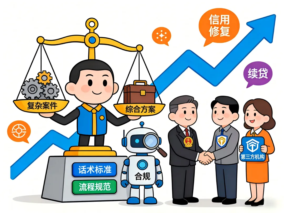 1. 复杂案件占比持续提升:受经济环境影响,“多头负债”“资产隐匿” 类案件将增至 30%,考验机构综合解决方案能力;