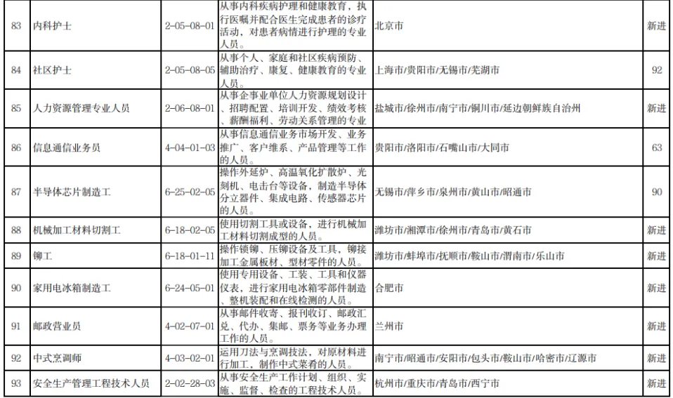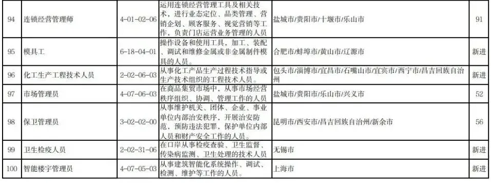 “最缺工”的100个职业排行