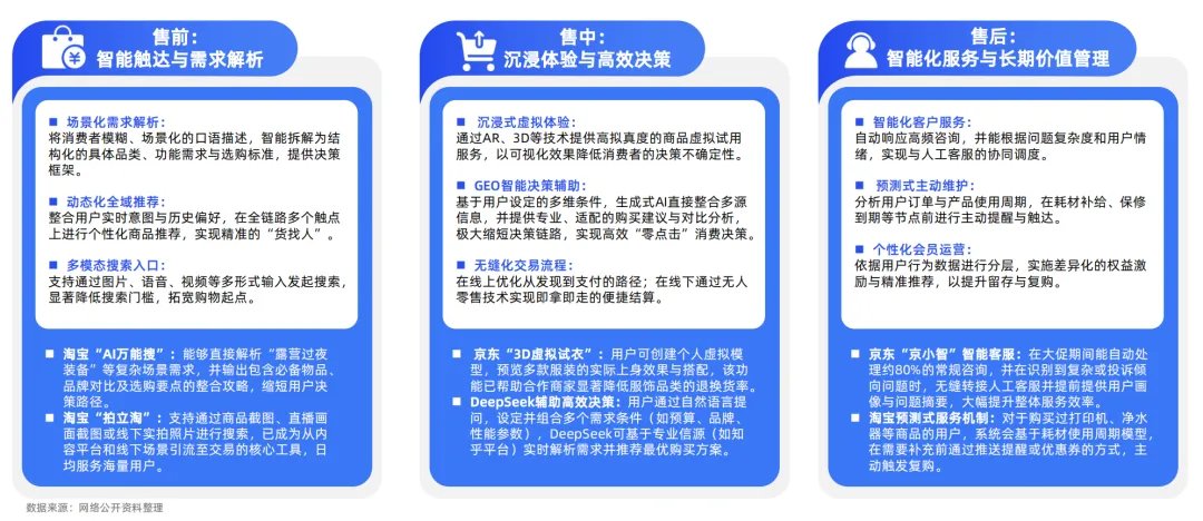 AI正在重塑零售本质,推动消费体验从单向搜索转向双向对话。通过智能导购的深度需求洞察、沉浸式技术的场景构建,以及全链路个性化服务的持续优化,消费者与品牌之间建立了更紧密的连接。这种转变不仅提升了购物决策的确定性,更创造了"懂人知货"的全新消费生态,标志着零售服务完成了从工具到伙伴的本质升级。
